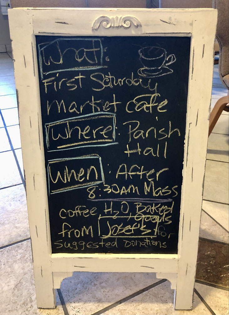 Market Cafe on Saturday, November 1st after the All Saints 8:30am Holy Mass, continuing until after the 1st Saturday Devotions